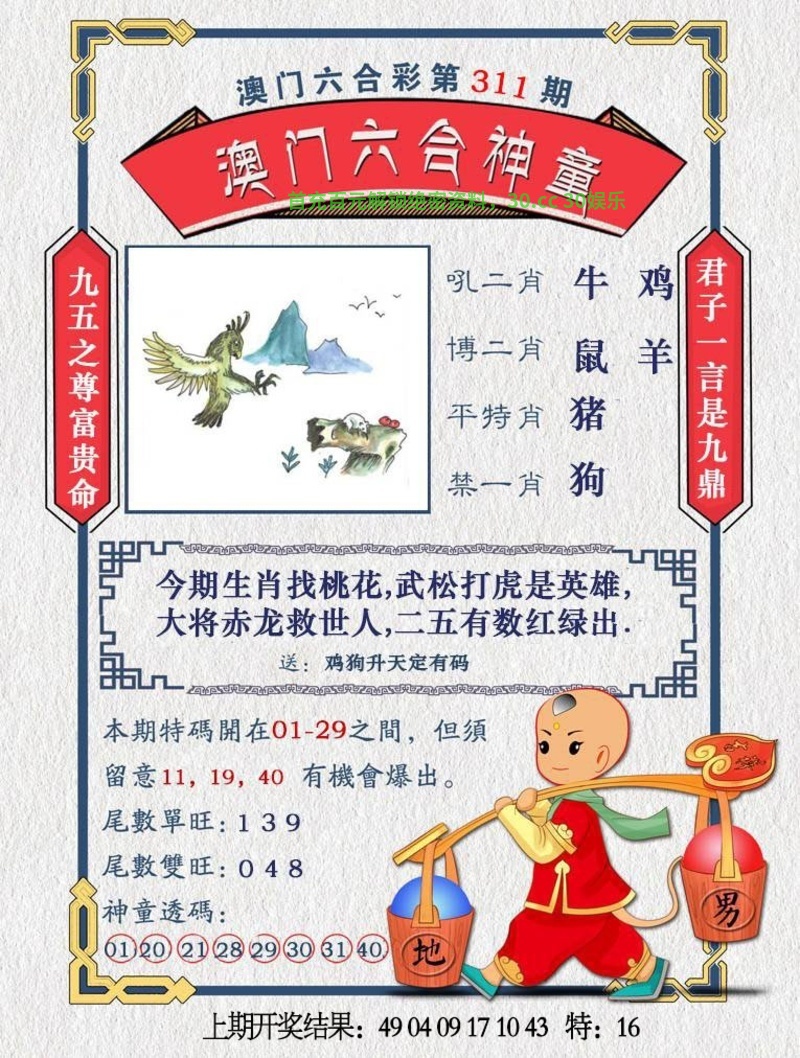 | 312期《七肖》【羊狗虎兔牛猴鸡】开 |