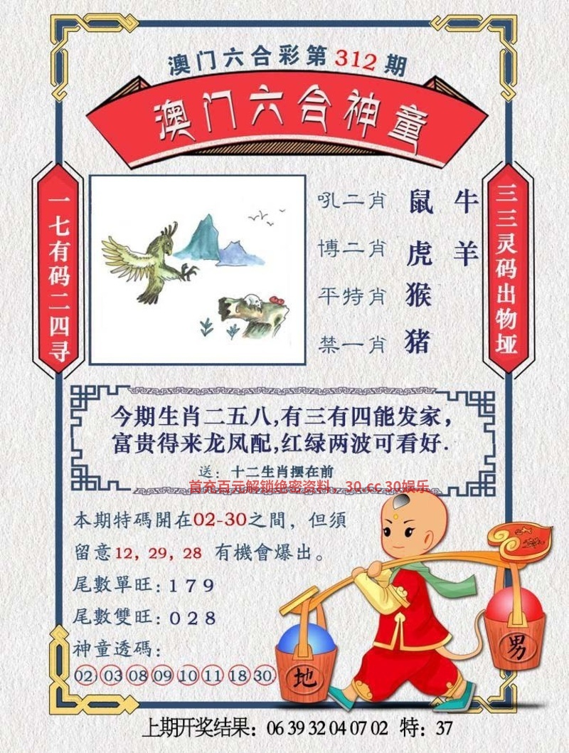 | 312期 | 三期必中 (鼠蛇兔马) | 开 | ||